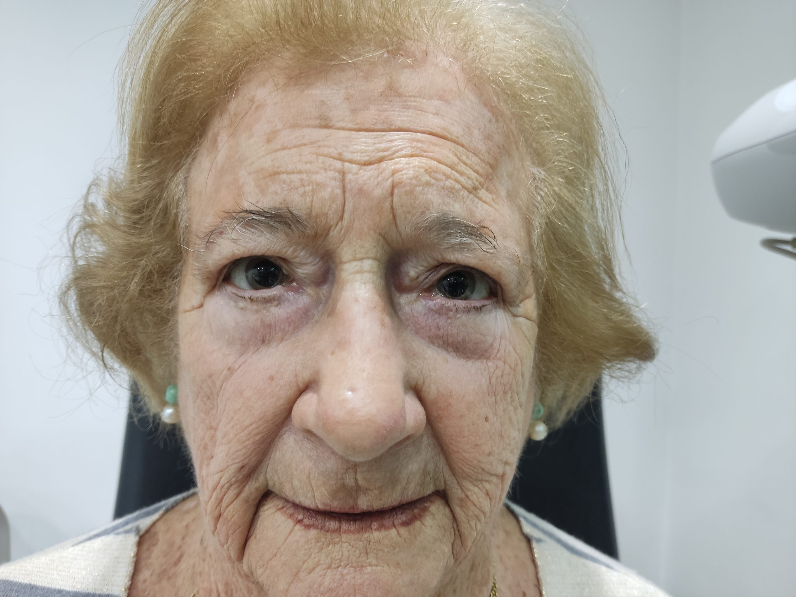 Se observa una mejoría en el contorno periocular y en la ptosis palpebral mecánica de la paciente.