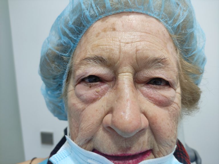 Paciente con dermatocalasia superior e inferior y herniacion grasa importante.