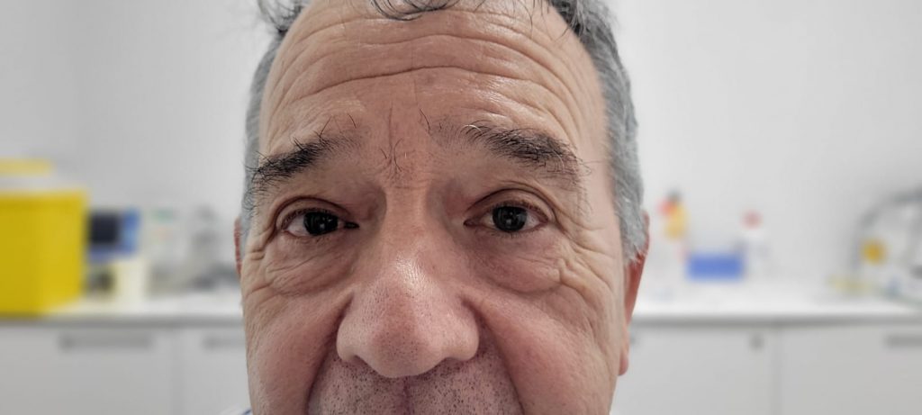 Se realizo una blefaroplastia superior con laser CO2 + blefaroplastia inferior via transconjuntival, es decir, sin cicatrices visibles + resurfacing CO2 del contorno periocular.