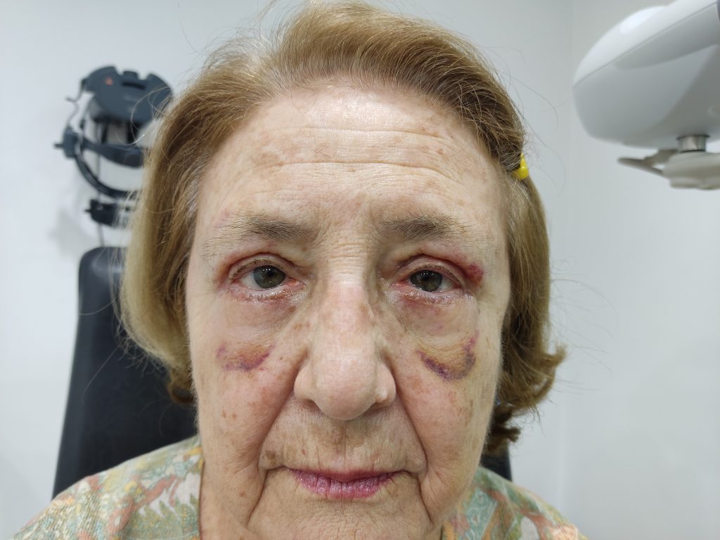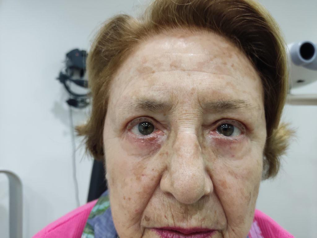 Realizamos una blefaroplastia de los 4 párpados con laser CO2. Se asocio exeresis de piel inferior.