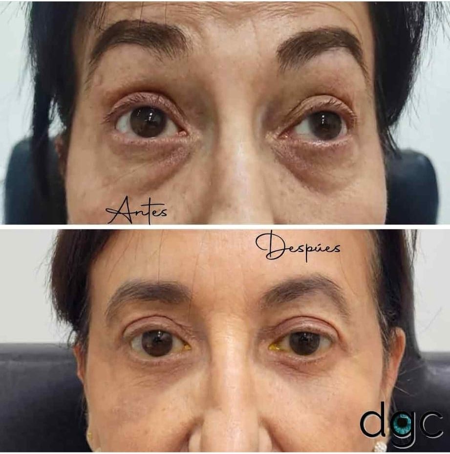 Se realizo blefaroplastia inferior transconjuntival, es decir sin cicatrices visibles. Asociamos un rejuvenecimiento fraccional con laser CO2.