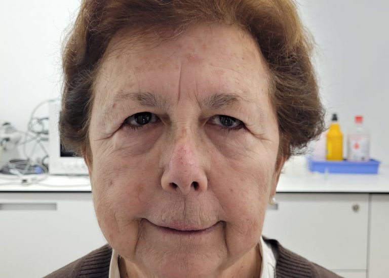 Observamos el resultado a los 2 meses de la cirugia. Ha mejorado la posicion de las cejas y su campo visual es mucho mayor