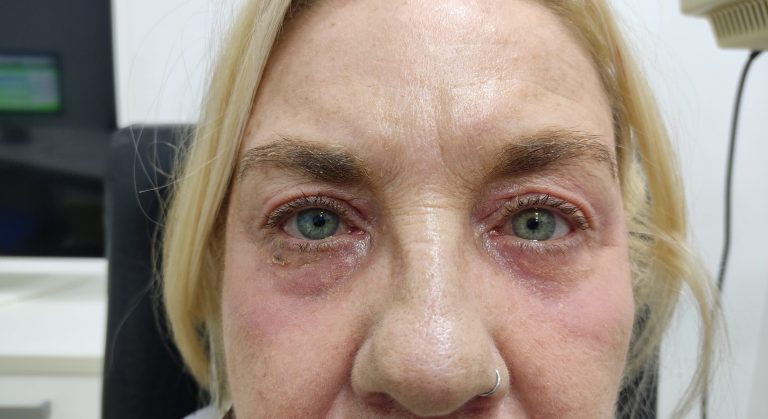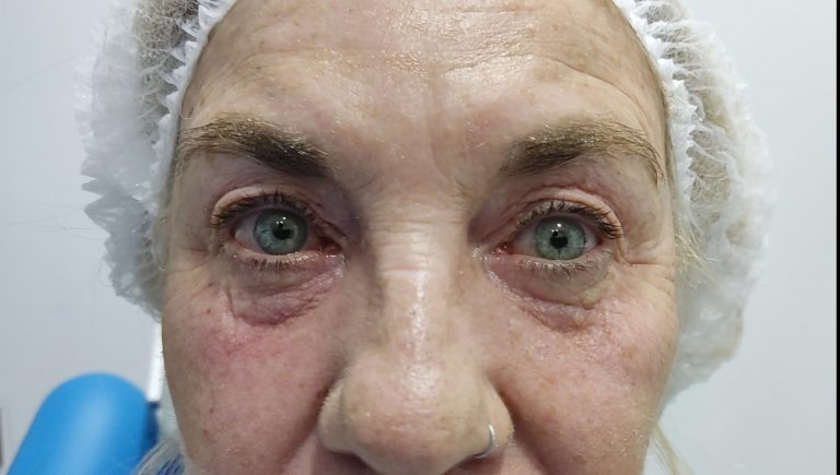 Se observa los resultados a las 2 semanas del tratamiento. Existe un gran cambio en todo el contorno periocular