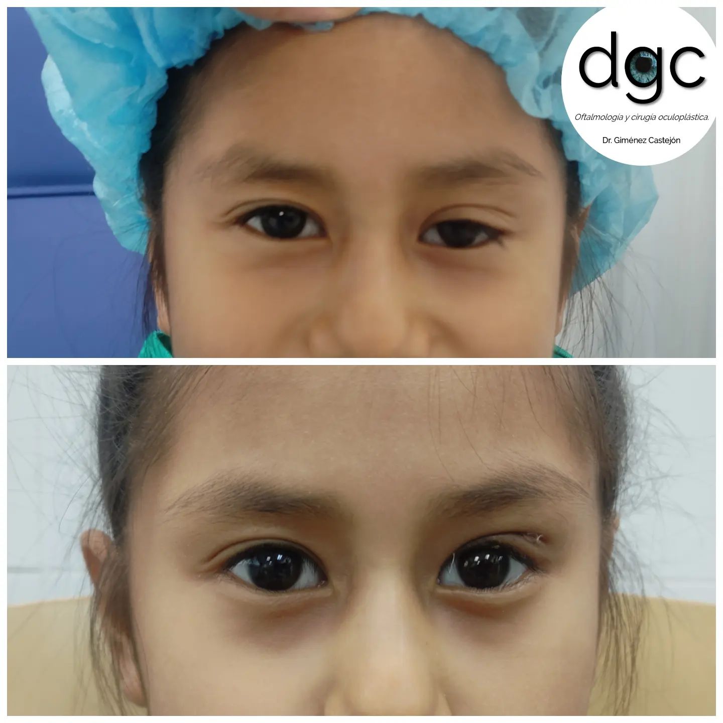 Niña de 6 años con ptosis palpebral congenita que cubre pupila.