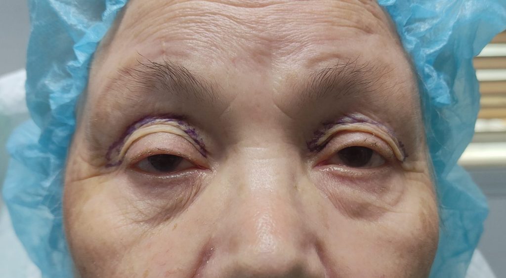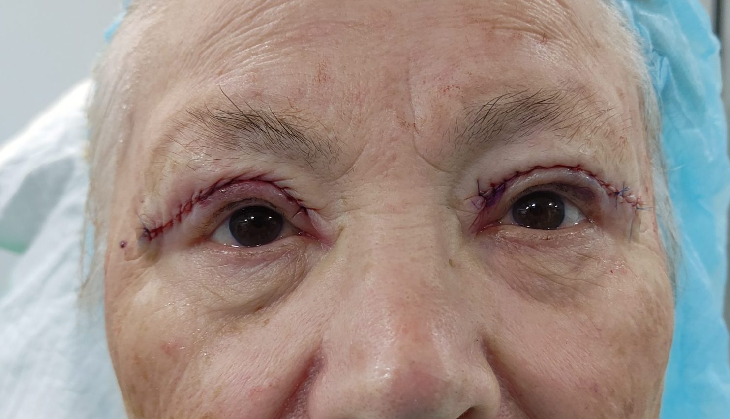Se realizó reinserción de la aponeurosis del elevador de ambos ojos con blefaroplastia superior asociada.