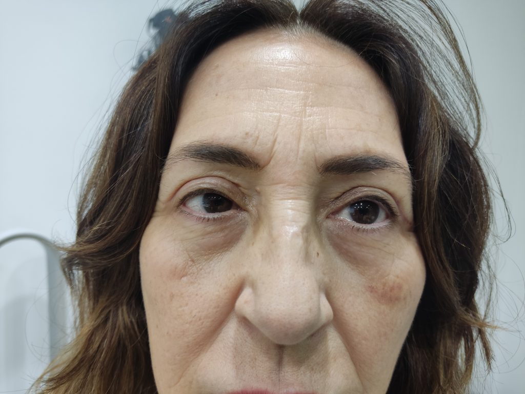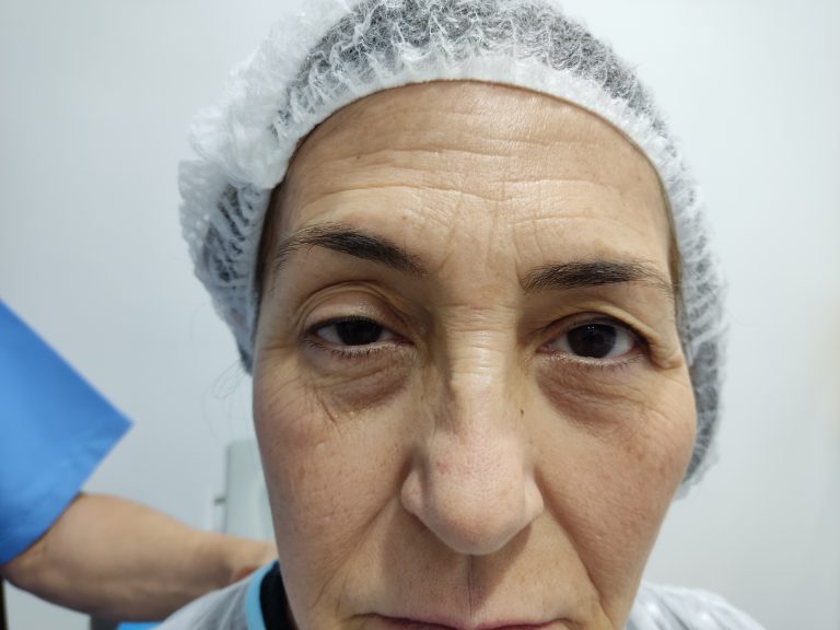 Se realizo reinserción de la aponeurosis del elevador de ambos parpados, debido a la ptosis latente del ojo izquierdo al elevador el derecho y se asocio una blefaroplastia superior con laser CO2.
