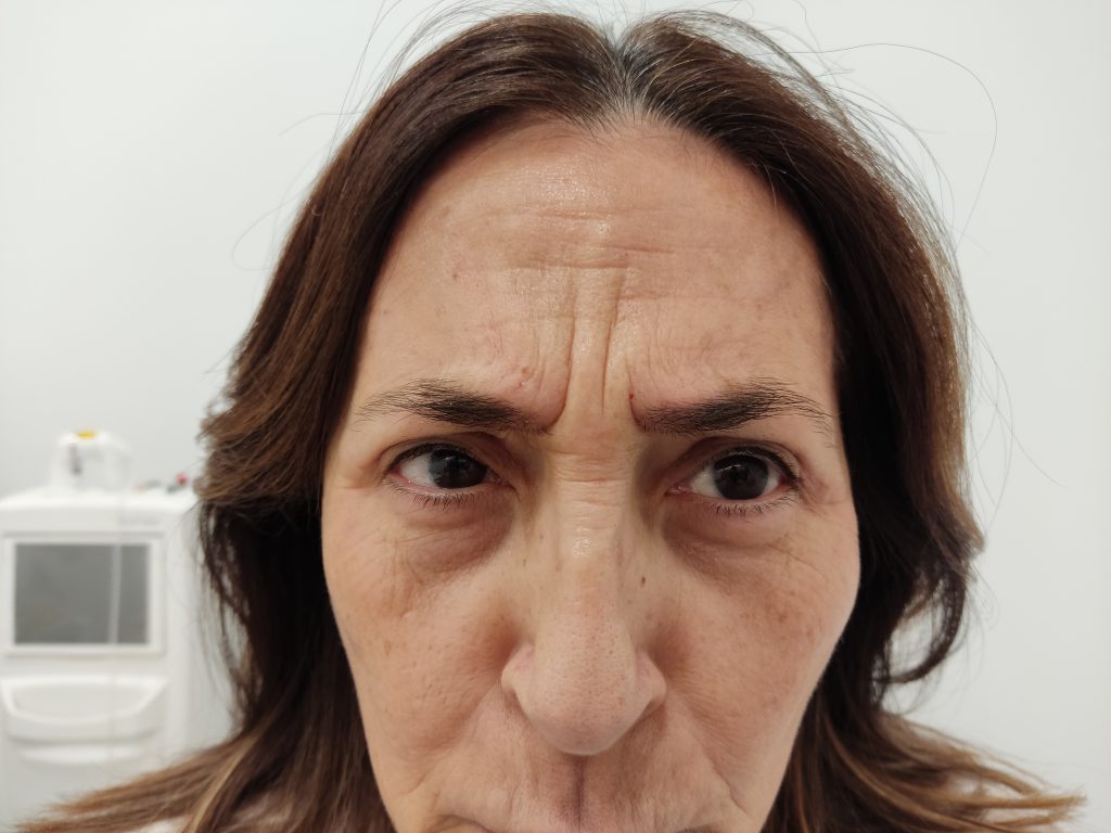 Posteriormente al mes de la cirugia se trato con neuromoduladores para reducir las arrugas de expresion.