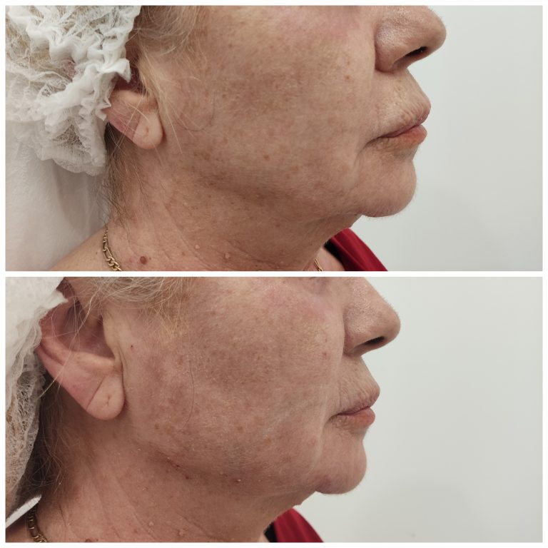 Se observa el resultado inmediato tras la realizacion del procedimiento. Existe una reduccion de las arrugas de expresion y una definición del arco mandibular